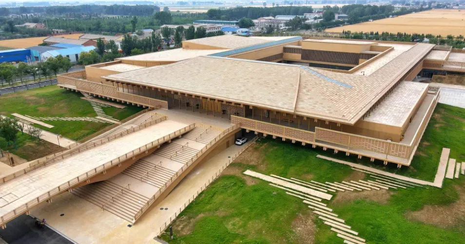 汉魏洛阳故城遗址博物馆是洛阳市“五大都城遗址博物馆群”重要组成部分。建成开放后的汉魏洛阳故城遗址博物馆占地面积约220亩,展厅面积约7000平方米,以汉魏时期历史文化为核心,荟萃1300余件(套)珍贵文物。 建筑整体庄严大气、古朴灵动,黄沙色外立面与遗址环境浑然一体,宛如一座巍峨宫殿屹立于茫茫平原。